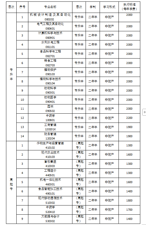 1. 学习形式:非全日制,非脱产类;层次:专科起点升本科(简称“专升本”)、高中起点升专科(简称“高起专”)。